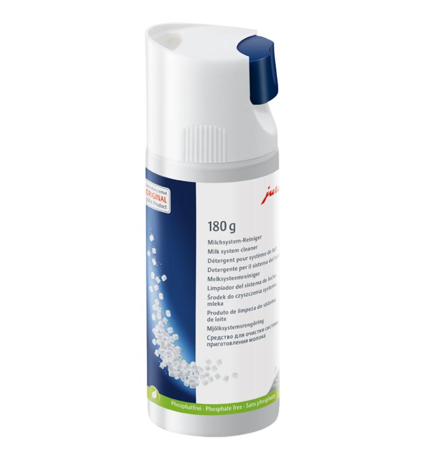 Оригинальное средство для чистки капучинатора JURA (Джура) 180 гр. Чистящее средство для капучинатора полностью удаляет остатки молока и также из трубочек после многократного приготовления напитков с молоком (капучино, латте, флейтвайт и др.). Во время процесса автоматической очистки микрогранулы эффективно справляются с молочным жиром и белками. Всегда гигиенически чистые шланги гарантируют приготовление воздушно-нежной молочной пены.